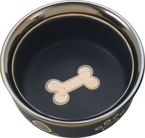 RITZ COPPER RIM CAT DISHStylish stoneware dish has a metallic rim and accents. Matte black finish.